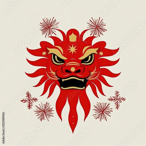 mask, festive, celebration, fireworks, new year, chinese new year, lunar new year, asian culture, traditional, culture, design, graphic, illustration, vector, artwork, art, symbol, holiday, event, festival, vibrant, bold, red, gold, auspicious, good luck
