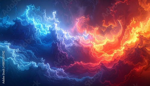 Fiery and Icy Nebula Cloudscape - A Cosmic Dance of Light and Color.