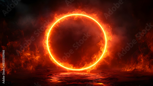 Fiery Circle of Light: Abstract Fire Ring with Smoke and Flames, Glowing Portal, Mystical Aura