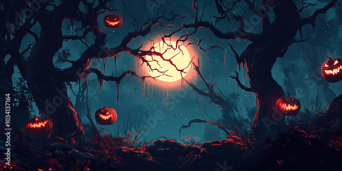 Fiery Halloween background with pumpkins and flames, burning in a black texture illustration,Generated By Ai