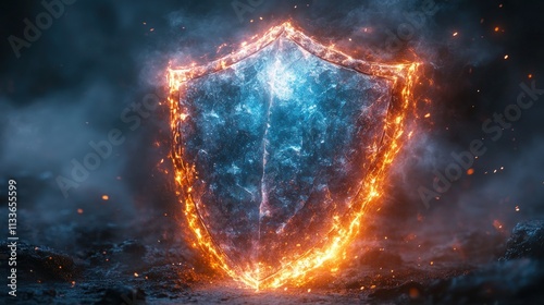 shield, fire, ice, stone, burning, glacé, fantasy, magic, dark, energy, power, protection, defense, mythical, legendary, combat, battle, warfare, strong, resilient, elemental, inferno, glacier, cold, heat, spark, smoke, rugged, textured, abstract