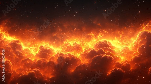 Fiery Inferno: A mesmerizing digital abstract art piece showcasing the raw power and untamed beauty of fire. Vivid orange and yellow flames surge and dance.