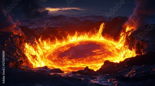 Fiery Inferno: A Volcanic Crater's Eruption
