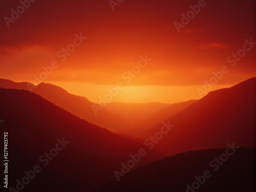 mountain chain, sunset, red sky, silhouette, landscape, dusk, twilight, mountain, nature, scenery, evening, orange sky, dramatic sky, vale, golden hour, atmospheric, warm colors, peaceful, serene, scenic view, dark, overlook, horizon, cloudscape, wilderness, outdoors, tranquil, vista, background, gradient, light, shadow, contour, hill, ridge, elevation, terrain, remote, untouched, unspoiled, calm, quiet, majestic, huge, expansive, distance, faraway
