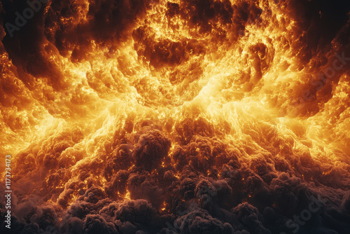 fire, smoke, flames, intense, powerful, dramatic, apocalyptic, destruction, chaos, impact, fiery, energy, catastrophy, blast, danger, heat, devastation, disaster, glowing, cinematic, inferno, eruption, burning, dark clouds, tension, extreme, fallout