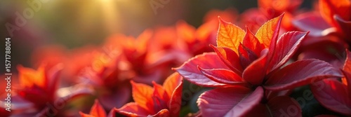 Fiery Red Plants Basking in Sunlight Close-up Detail of Unique Flame-like Leaves and Petals
