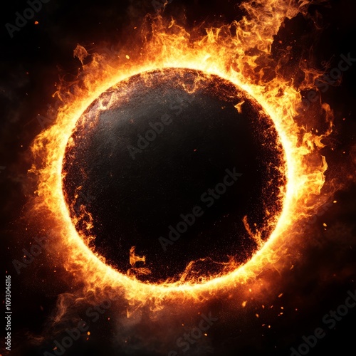 fire, flames, ring, circle, sphere, dark, black, hot, burning, inferno, blaze, heat, energy, power, intense, bright, light, glow, smoke, ash, ember, cosmic, celestial, abstract, background, texture, design, element, graphic, illustration, image, fiery, molten, volcanic, sun, solar, star, space, universe, apocalypse, destruction, danger