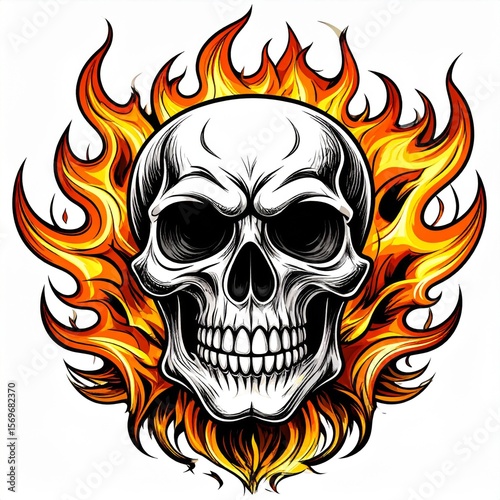 skull, flames, fire, death, danger, hot, intense, graphic, design, illustration, art, symbol, warning, scarey, creepy, dark, gothic, grisly, halloween, fiery, inferno, burning, orange, yellow, white, black, flaming, on, dangerous, digital, abstract, symbolism, power, energy, imagery, heat, destruction, blaze, passion