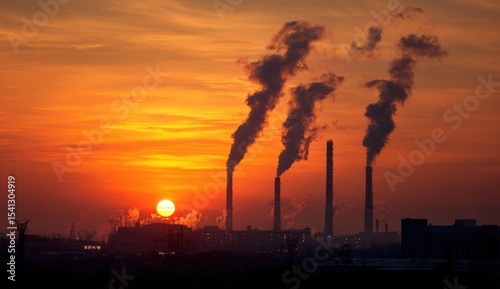 sunset, industry, factory, smoke, pollution, environment, power, plant, energy, industrial, landscape, sky, orange, fiery, silhouette, tower, chimney, emission, air, atmosphere, global, warming, climate, change, carbon, fossil, fuel, dark, contrast, vibrant, colours, heat, sun, horizon, evening, dusk, city landscape, urban, industrialization, development, technology, infrastructure, manufacturing, production, contamination, ecology, nature, problem, crisis