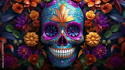 celebration, festive, floral arrangement, cultural, vibrant, day of the dead, ai, generative, skull, vector, art, tattoo, illustration, face, mask, symbol, design, woman, decoration, vintage, halloween, culture, evil, head, doll, carnival