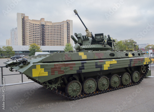 vehicle, military, camouflage, war, armored, army, tank, kiev, ukraine, ukrainian, force, infantry, gun, armoring, defense, air, adapted, assistance, white, counter, turret, power, arm, protection, soviet, duty, tracked, weapon, exposition, practice, solder, machine, industry, front, handover, help, exhibition, green, kiev, armed