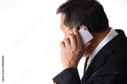50's, 60's, smartphone, call, smartphone, suit, business, businessman, middle-aged, aged, people, work, mobile, mobile phone, wear, drape, spend, hear, possess, white, background, japanese, call, speaking, work, man, waist up, salaried employee, manager, manager, president, father, father, asian, beard, copy space