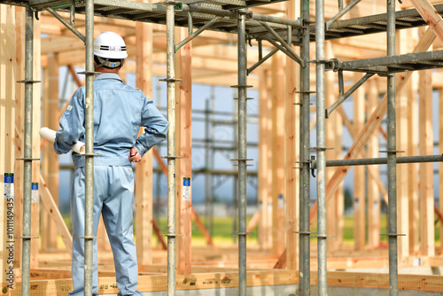 industry, architecture, mast, builder, residential area, house, season, energy, architect, engineer, outdoors, engineer, man, professional, hard hat, helmet, checking, quality control, drawing, plan, craftsmanship, affirmation, operation, man, people, work, under construction, constructor, japan, japanese, man, composition, working man, scaffold, business
