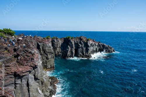 日本の静岡県伊東市の城ヶ崎海岸の美しい風景