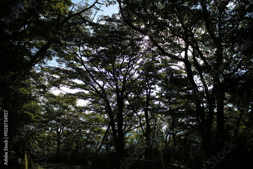 hike, landscape, sun, wood, grove, forest, green, nature, branch, leaf, wicker, travel, outdoors, landscape, forest, weather, plant, wind, calm, ease, sunny, blue skies, sky, cloud, climb, view