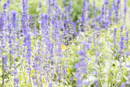 サルビアの花にとまるモンキチョウ