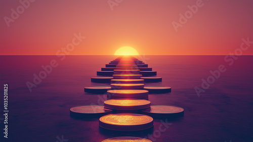 輝く頂に導く硬貨の階段