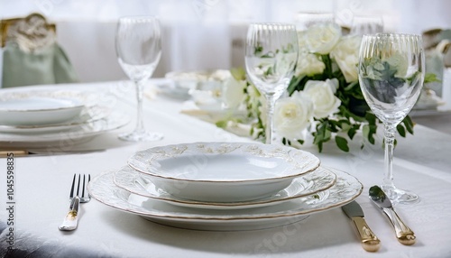 고급스러운 도자기 접시가 테이블 위에 세팅되어 있다