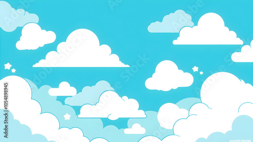 シンプルな青空と雲のイラスト背景