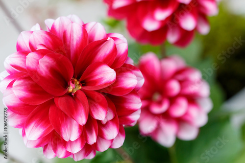 dahlia, flower, red, purple, blue, white, plant, nature, macro, macro, closeup, flower petals, pretty, sweet, lovely, background, copy space, up, spring, full bloom, light, landscape, asteraceae, leaf, clean, green, green, pink, pink, background, material