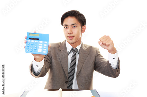 success, achievement, japanese, man, people, businessman, man, people, business, work, work, corporation, corporate, employee, office, salaried employee, income, adult, model, good-looking, calculation, cravat, shirt, object, calculating machine, smile, smile, smile, enjoyment, fun, feeling, lively, object, happy, happiness, health, cosmetic, light, expression, copy space, body, waist up, white background, expense