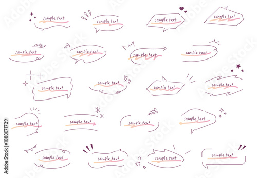 手書き蛍光ペンの吹き出しに文字イメージありアンダーラインセット ピンクグラデーション