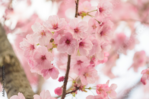 東京都内の満開の桜のクローズアップ
