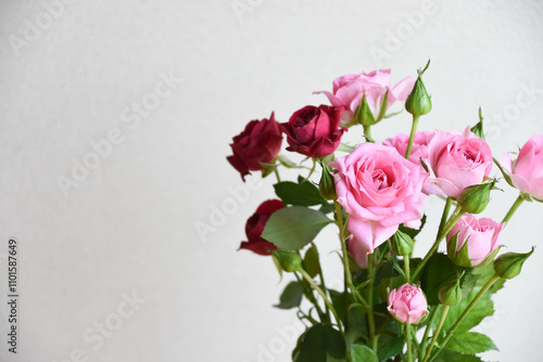 赤とピンクのスプレーばら