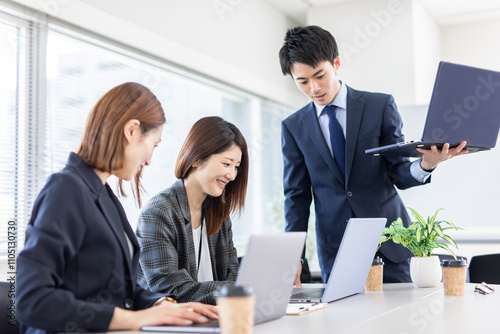 office, work, man, businessman, carrier, business, suit, call, woman, 30s, colleague, meeting, two people, corporation, team, shirt, jacket, meeting, cravat, personal computer, customer service, corporate, planning, synchronization, meeting, career woman, office, rehabilitation, personal computer, ol