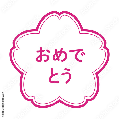 桜のスタンプ風イラスト 「おめでとう」の文字入り 背景透過