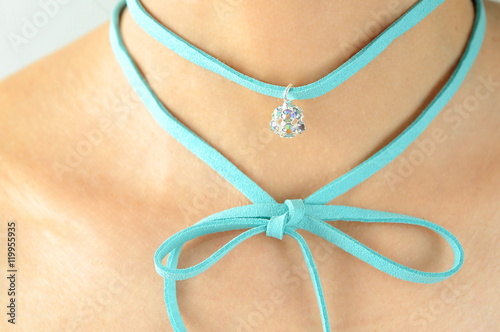choker, accessory, blue, ribbon, people, necklace, fashion, copy space, woman, japanese, knick knack, light, sweet