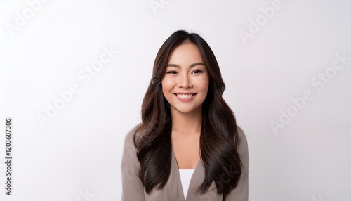 笑顔の女性 - シンプルなホワイトバックグラウンドでのポートレート
