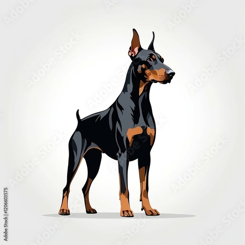 doberman, dog, illustration, picture, illustration, black, black, black, stand, lineage, animal, pet, mammal, portrait, fellow, cool, cool, dog, pet, breed, mammal, purebred