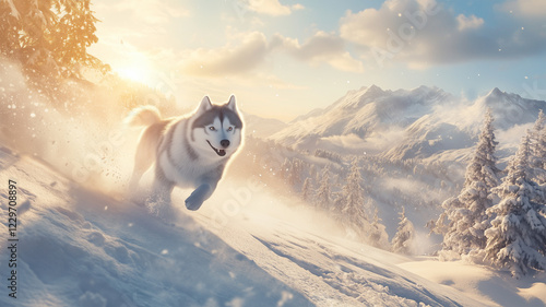 雪原を駆け抜けるシベリアンハスキーの力強い疾走