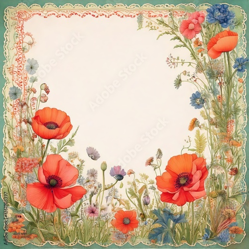 ヴィンテージスクラップブック, ノスタルジックデザイン, アンティークスタイル, 水彩イラスト, 小花, フラワーモチーフ, ブルーム, 繊細なレース