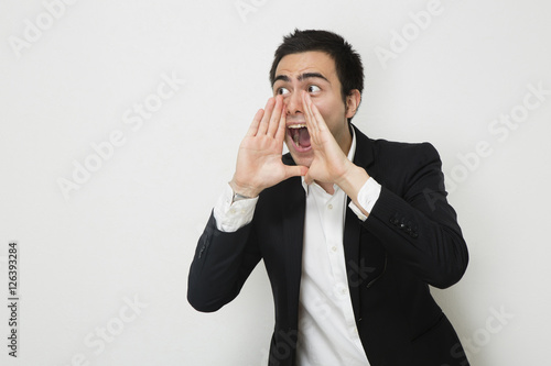 people, japanese, asian, white, man, businessman, employee, salaried employee, salesman, copy space, indoor, indoor, white background, work, corporation, office, business, communication, relationship, boss, colleague, secondary, client, client, consultation, relax, future, future, peace, confidence, insurance, challenge, cheer, suit, plenitude, effort, success, promotion, pay, lucky, fun, yelling, waist up