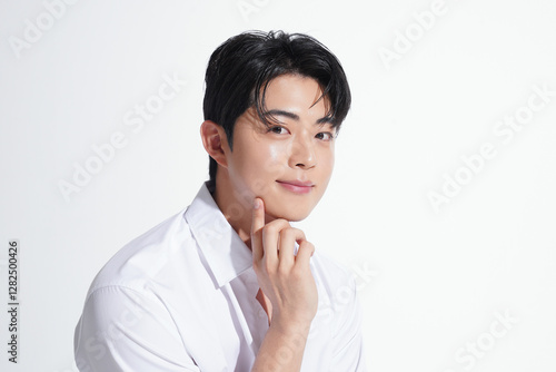 白いシャツを着た若い男性の爽やかな美容ポートレート
