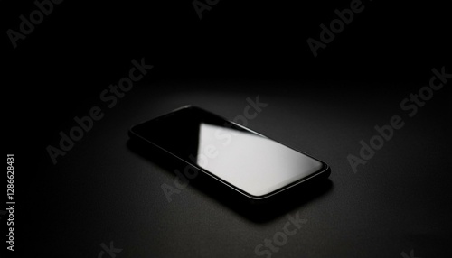 검은 배경에서 스마트폰이 빛을 받으며 놓여 있다