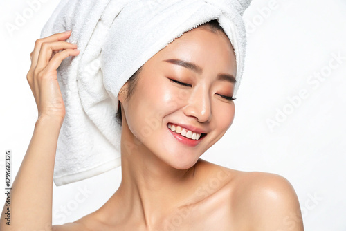 アジア人女性の美容イメージ タオルドライ(スキンケア・ボディケア・エステサロン)