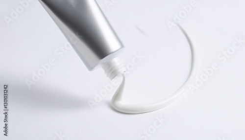 흰 배경 위, 물감이 튜브에서 짜여 나와 곡선을 이루는 모습