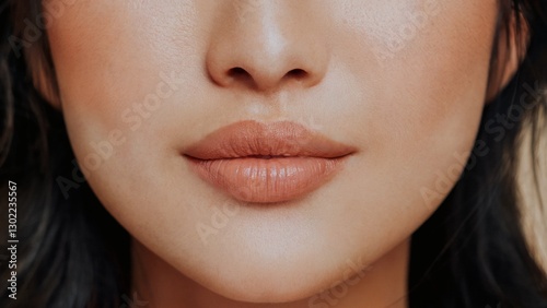 ミューテッドオレンジの口紅を塗った女性の唇