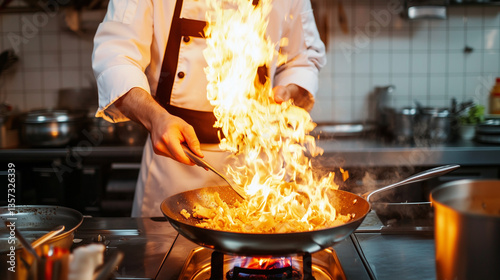 chef, cook, professional, fire, flames, flambe, spark, flare, kitchen, kitchen, labcoat, dish, solemn, concentration, dynamic, performance, man, pot, pan, action, spark, smoke, firepower, cooker, hot air, lighting, passion, technology, fire, food and drink, epicurean, energy, overdose, real, expression, rendering, background