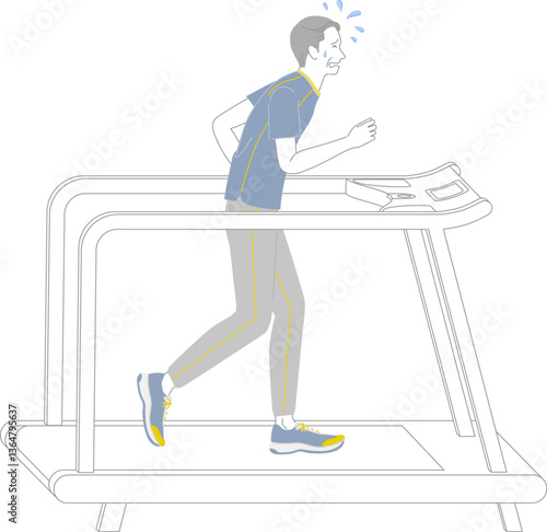 gym, arduous, man, run, sweat, aged, machine, training, health, running, fatigue, jog, fitness, exercise, working out, diet, treadmill, health care, exercise, sport, stern, anguish, ageing, aged, aged, 60's, grandfather, purple, grey, white, illustration, vector