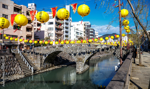 nagasaki, tour tourism, kyushu, tourist attraction, bridge, stone bridge, landscape, river, arched, stream, chinese new year, lantern, travel, festival, lantern, event, japan, showplace