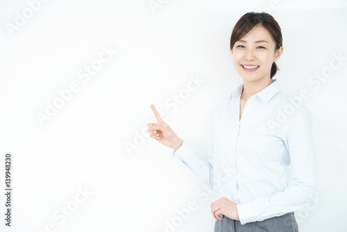 business, woman, career woman, recommend, recommend, refer, information, work, work, suit, office, ol, white, white background, japanese, asian, employee, corporation, smile, sweet, pretty, pretty, clean, alone, young, waist up, adult, homemaker, lifestyle, live, girl