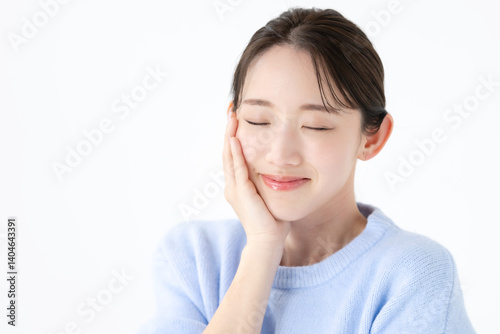 skincare, woman, skin, young, cosmetic, beauty, white, white background, cheek, face, dryness, ultraviolet, smile, winter, pretty, clean, people, girl, japanese, asian, bare skin, closeup, eye, peace, make-up, make-up, homemaker, fall, tan, morning sun, acne, model, hand, happiness, health
