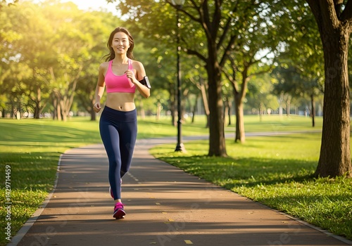 朝の光の中で公園を走るランナーのヘルシーライフスタイル