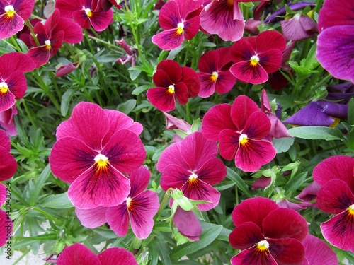 赤紫色のパンジーの花のアップ