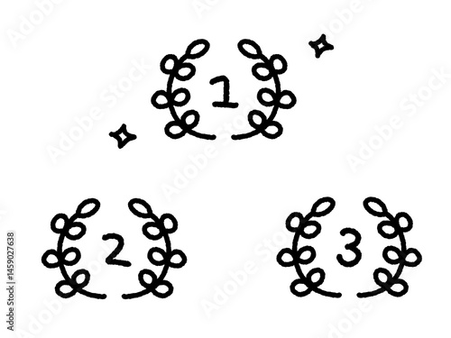 cute, illustration, laurel wreath, set, ranking, loose, sweet, graffiti, laurel, leasing, figure, icon, first place, leaf, mark, ranking, black, monochrome, glitter, handwriting, material, decoration, mention, victory, number, ornament, celebration, contest, design