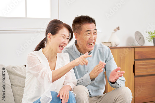couple, aged, television, look, middle-aged, smile, applause, 60's, compatible, home, rejoice, joyful, aged, house, chum, enjoy, living room, room, wife, husband, clap, fun, indoor, woman, man, elder, aged, indoor, japanese, asian, grandfather, people